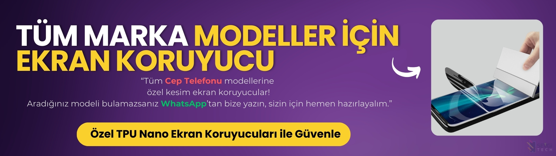 SevgiTech, akıllı telefon, tablet ve akıllı saatler için özel kesim TPU Nano ekran koruyucu üretiminde uzmanlaşmıştır. Tüm cihaz modellerine milimetrik uyum sağlayan şeffaf, mat ve hayalet ekran koruyucularımız, ekranınızı çizilmelere ve darbelere karşı korurken dokunmatik hassasiyetinizi de korur. Aynı gün kesim ve hızlı kargo avantajıyla kullanıcılarımıza her zaman güvenilir ve kaliteli bir alışveriş deneyimi sunuyoruz.