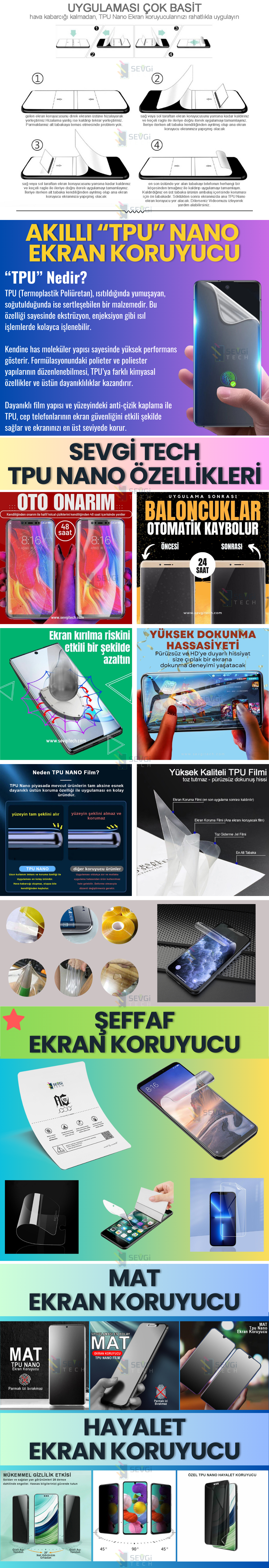 SevgiTECH Özel Kesim TPU Nano ekran koruyucuları, her cihaz modeli için milimetrik uyum, üstün dayanıklılık ve kolay uygulama deneyimi sunar.